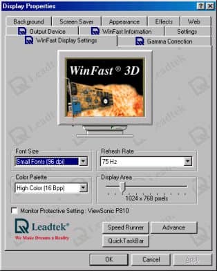 Работа с любой видеокартой начинается с установки драйверов. Рассмотрим особенности поставляемых фирмой Leadtek драйверов. При тестировании использовались драйверы от Leadtek версии 1.09: