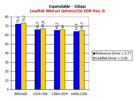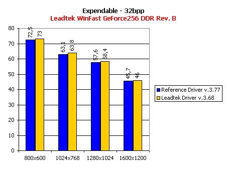 Ввиду того, что драйвера от Leadtek представляют собой переработанную версию эталонных драйверов от NVIDIA версии 3.68, я решил провести сравнение производительности видеокарты при работе на этих драйверах с reference-драйверами от NVIDIA версии 3.77 (на сегодня это последняя законченная (не бета) версия драйверов).