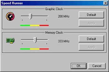Эта закладка представляет собой утилиту для разгона компонентов видеокарты, здесь можно повышать частоту работы чипа до 280 МГц и памяти до 470 МГц.