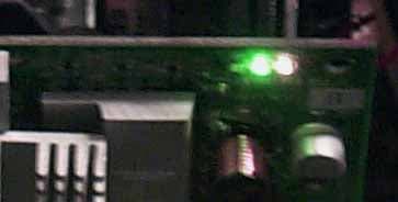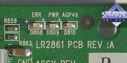 При нормальной работе горят два правых "фонарика": зеленый (сигнализирующий подачу питания) и желтый, который горит при активном режиме AGP 4x.