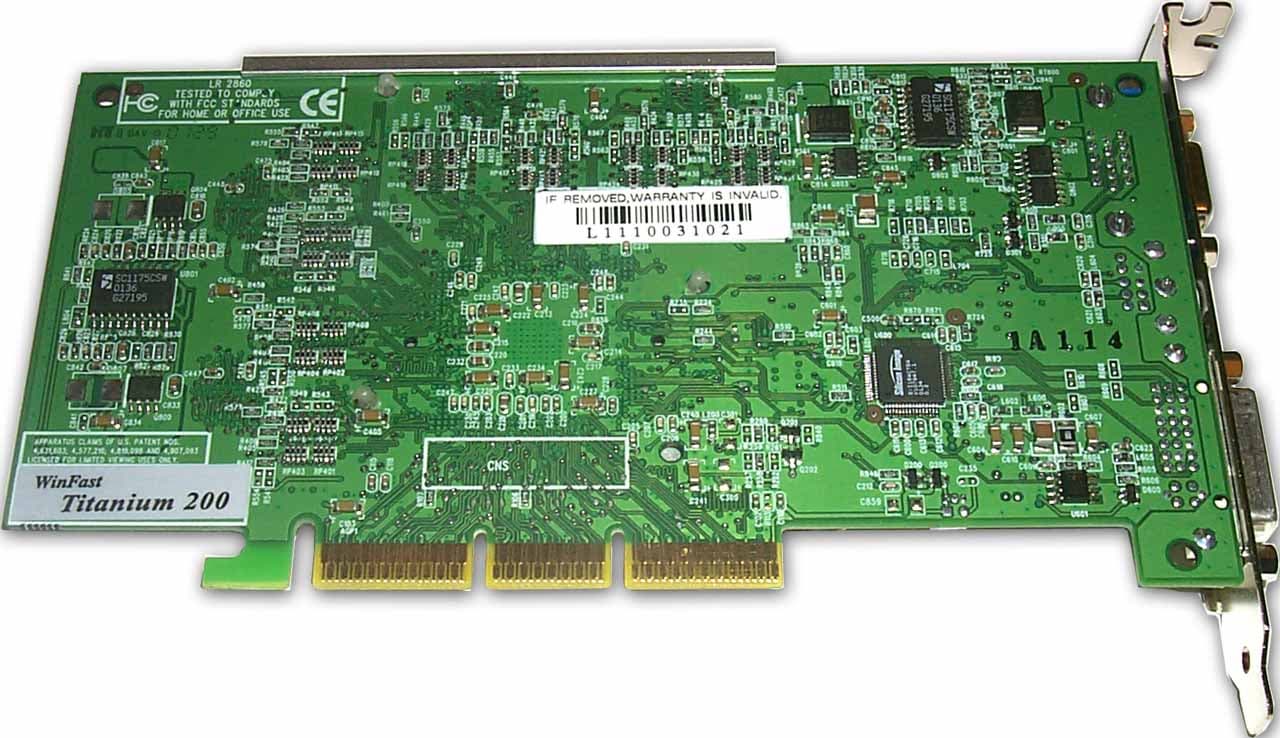 Карта Leadtek WinFast GeForce3 Ti 200 имеет AGP x2/x4 интерфейс, 64 Мб DDR SDRAM памяти, размещенной в 8-ми микросхемах на лицевой стороне PCB.