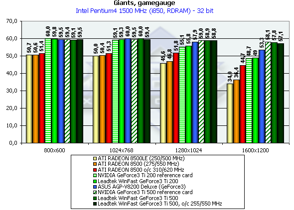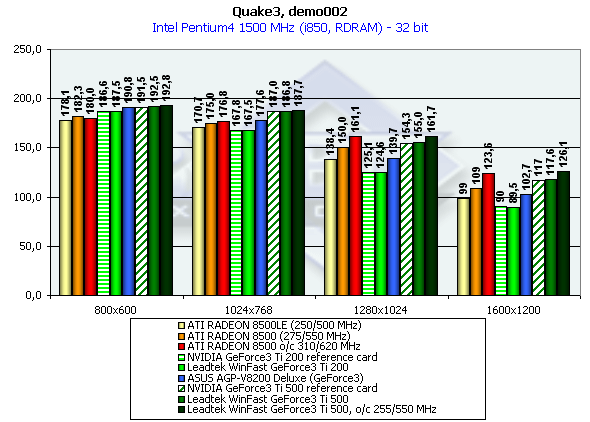Вот и настал через ликования сторонников NVIDIA и горького плача "АТИ-шников". Последние должны просто объявить войну отделу программирования в ATI и потребовать от любимой фирмы немедленного исправления такого конфуза. Даже не требуется рассмотрения по отдельным платформам. Поражение RADEON 8500 налицо. Что касается положения внутри линейки Titanium — то здесь все согласно "штатному расписанию" :-).