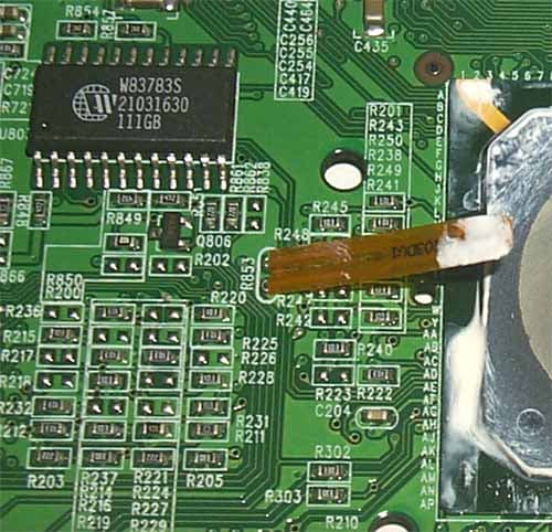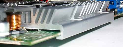 А чтобы эта громадина не перекосилась, ее верх сделан с загибом, который охватывает PCB. В самом деле, сколькими штифтами не крепи такое сооружение, все равно перекосы могут быть просто от тяжести радиатора.
