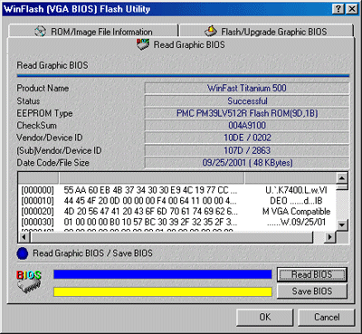 Должен сказать, что с картами поставляются драйверы от Leadtek, базируемые на NVIDIA 14.62. И, безусловно, фирменная утилита WinFox, предоставляющая пользователю много удобств по настройке видеоплаты. Мы уже рассматривали неоднократно эту программу, поэтому читайте наши материалы в разделе Видеосистема в части вендора Leadtek. Я хочу упомянуть о дополнительной возможности, которую ныне предоставляет WinFox — это возможность прошивки BIOS во флеш-память видеокарты без выхода из Windows: