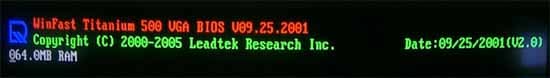 Кстати, сам BIOS всех видеокарт от Leadtek очень красиво высвечивается при включении компьютера и просчитывает (возможно, проходит тест) видеопамять: