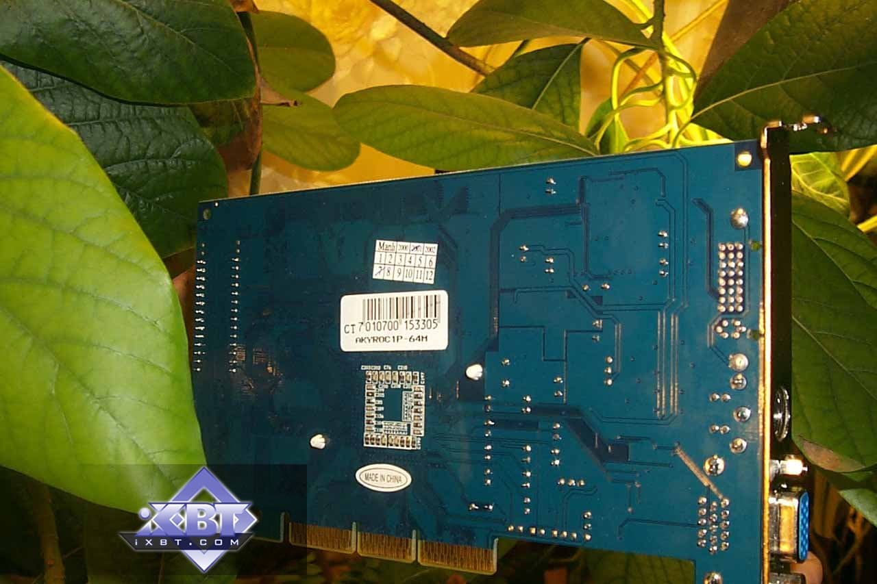 Микросхемы памяти у KYRO II 64MB марки V-Data, время выборки такое же — 5.5 ns, что соответствует 183 МГц. Manli KYRO II 64MB имеет частоты 175/175 МГц. | ![]() |