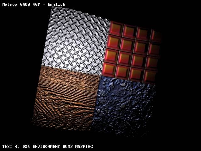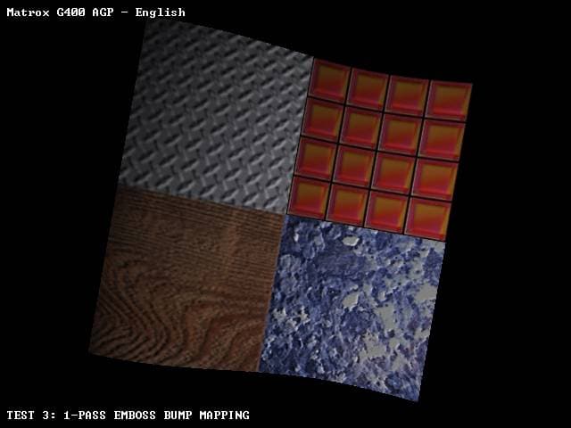 - Rage Expendable — демоверсия игры — бенчмарк, позволяющий увидеть работу рельфного текстурирования у Matrox Millennium G400, а также исследовать падение производительности при работе Enviroment Mapped Bump Mapping;