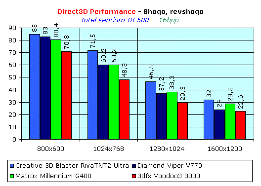 Тестирование проводилось на двух платформах: на базе Intel Pentium III и AMD K6-2. Начнем с 16-битного цвета и системы на базе Pentium III — 500 MHz.