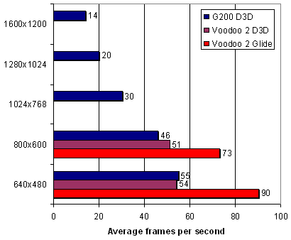 Во-вторых: Если вы установите 2 Voodoo2, то это вам обойдется в $500, т.е. почти в 2 раза дороже чем стоит 16Mb Retail G200!