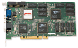 Плата на шину PCI 2.x, c 8-ю мегами EDO DRAM 25ns 100Mhz от SiliconMagic. Память расположена с двух сторон. Два внешних разъема для монитора и PassThrough cable, один внутренний 34-пиновый для создания MegaMonster'а, т.е. для подключения второй, такой же платы. Четыре крупных чипа, два 3DFx Texelfx2 Mapping Unit, один 3DFx Frame Buffer Interface Controller и один Digital to Analog Converter. Первые три являют собой чипсет 3DFx Voodoo2.