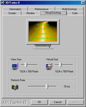 Но это еще не все! При помощи этой утилиты можно организовать виртуальный рабочий стол (desktop)! Много времени уже такой возможностью мог похвастаться только Matrox. А теперь и владельцы MS-8809 на NVIDIA GeForce256 могут тоже воспользоваться этой возможностью и получить доступ к гораздо большему, чем экранное разрешение, рабочему столу.