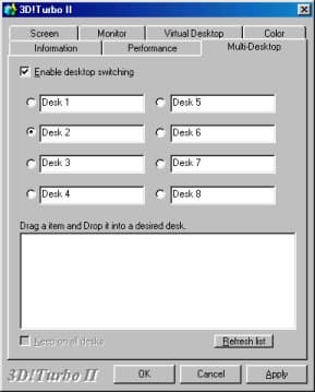 Но и это еще не все! А как насчет того, чтобы организовать не один, а несколько рабочих столов и переключаться между ними в зависимости от направленности работы на компьютере? 3D Turbo II позволит вам и это: