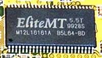 Микросхемы памяти произведены фирмой EliteMT и имеют время доступа 5.5 нс, что свидетельствует о том, что данная память может работать на частоте 183 МГц. NVIDIA рекомендует использовать в SDR-картах 166 МГц память, поэтому номинальная частота работы памяти на данной плате (как, впрочем, и на всех остальных картах этого класса) понижена до 166 МГц.