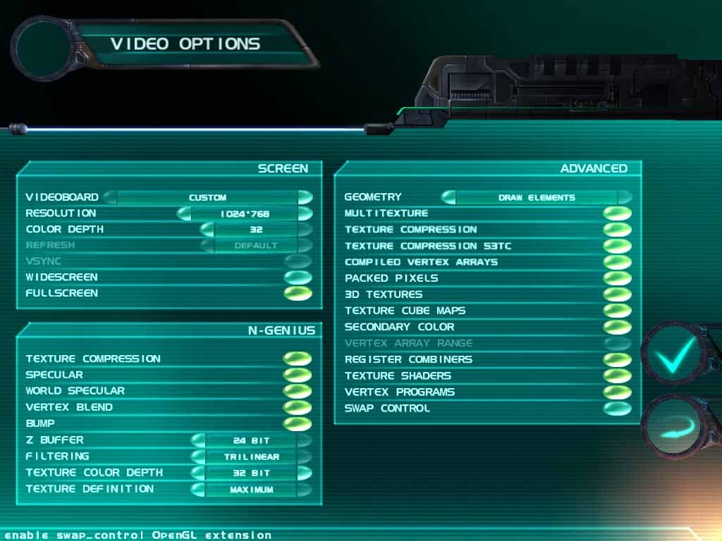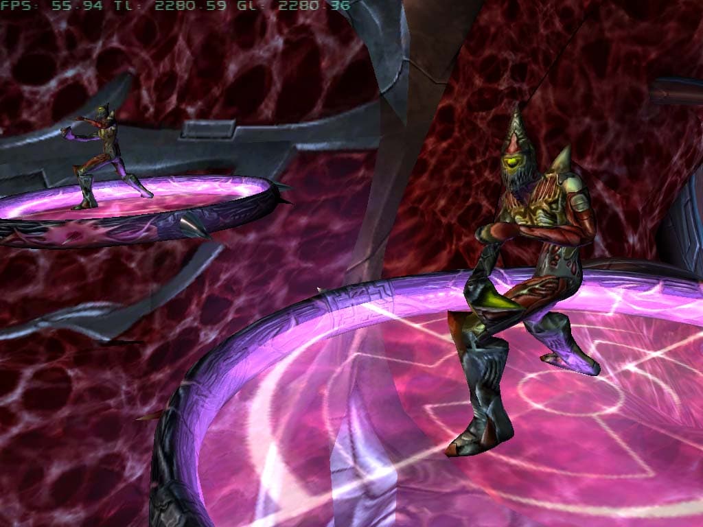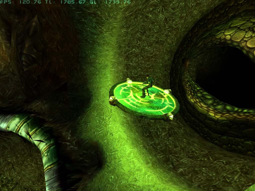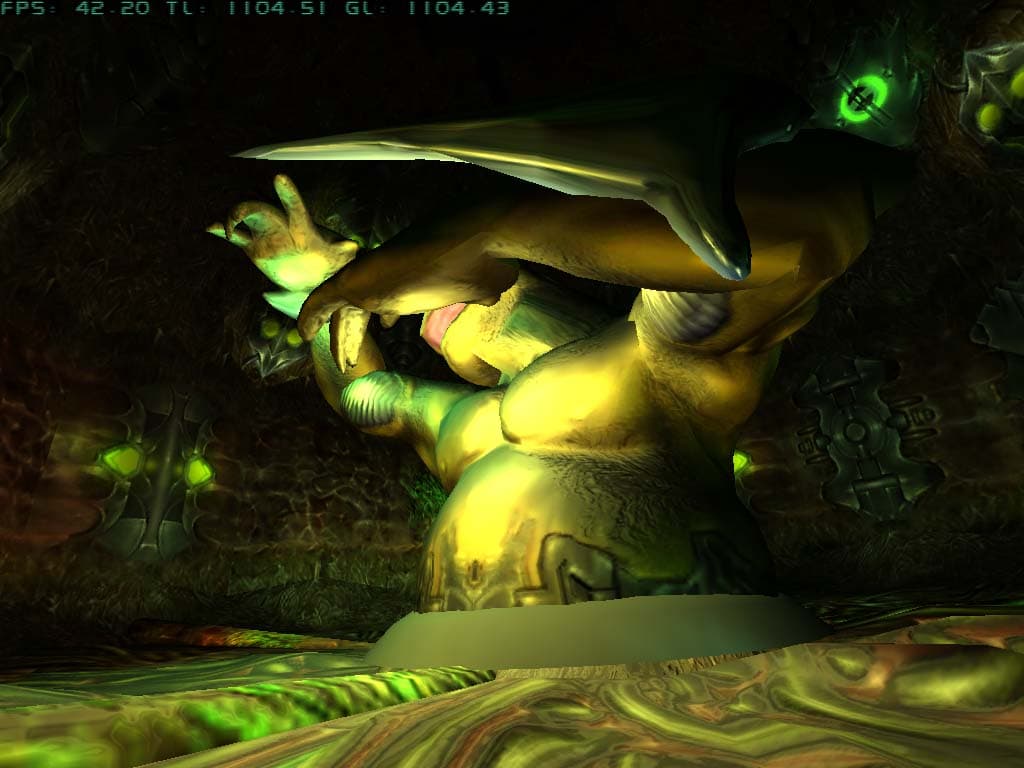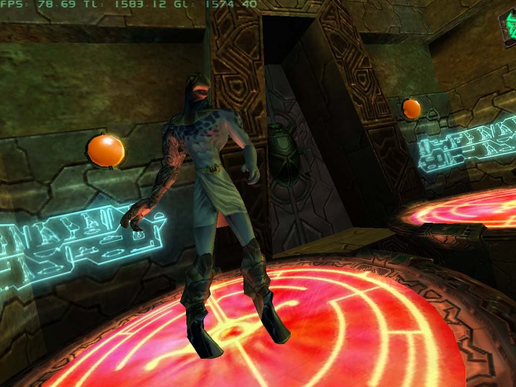 Эта игра (и, соответственно, бенчмарк) базируется на OpenGL, изобилует эффектами и сложностью графики. В настройках бенчмарка есть возможность использовать как самостоятельно выбираемые настройки, так и пресеты. Я использовал для тестирования пресет GeForce2 Pro/Ultra (конфигурацию можно увидеть на левом