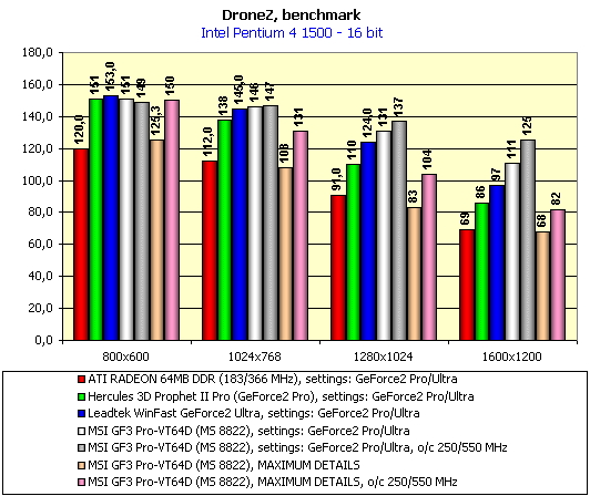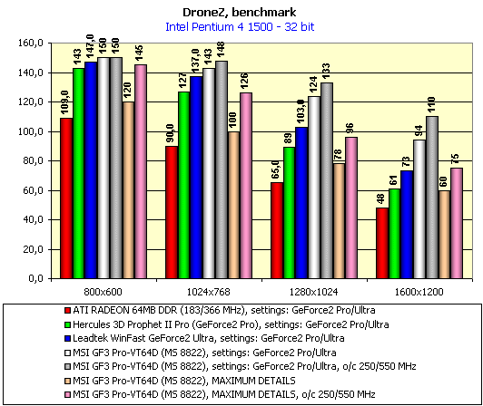 - Hercules 3D Prophet II Pro (GeForce2 Pro, 200/200 (400) MHz, 64MB);