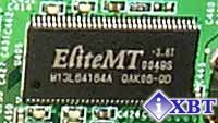 Микросхемы памяти марки EliteMT, время выборки — 3.8 ns, что соответствует примерно 260 (520) МГц. Как и все видеокарты на GPU GeForce3, MSI StarForce822 (MS 8822) имеет частоты 200/230 (460) МГц. Как я уже говорил выше, модули памяти не имеют охлаждения — столь привычные для такой быстрой памяти радиаторы напрочь отсутствуют. Конечно, на пониженных (230 МГц) относительно номинальных (260 МГц) частотах эта память работает без проблем и без охлаждения, однако ее нагрев, особенно если видеокарта находится внутри закрытого плохо продуваемого корпуса, вызывает некоторое беспокойство. В то время, когда в продаже появляются карты на GeForce3 от менее известных фирм, снабженные радиаторами, выпуск "недоделанных" карт от столь именитого производителя вызывает лишь недоумение.