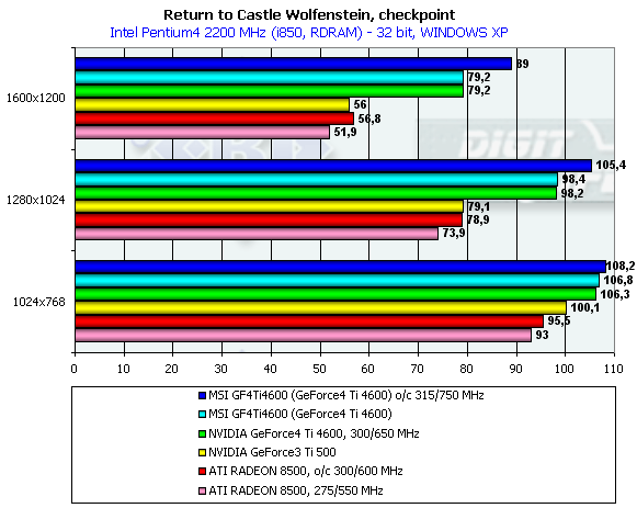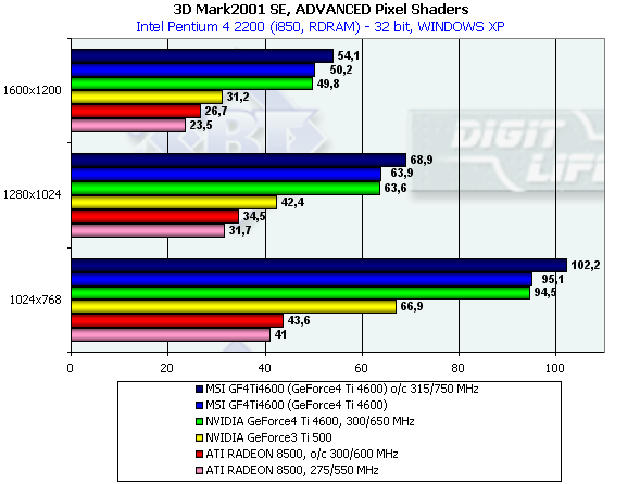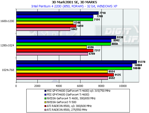 Конкуренция ATI RADEON 8500/8500eXP с… GeForce3 Ti 500 становится все менее успешной для детища ATI. GeForce4 Ti 4600 — по-прежнему весьма далеко.