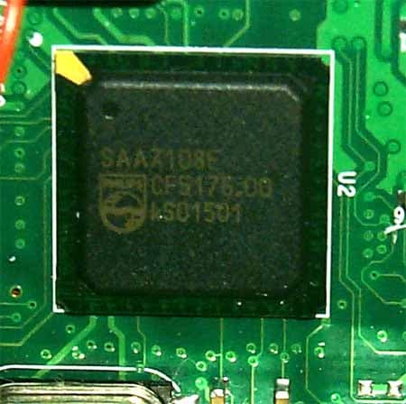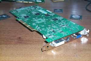 Продолжая осмотр карты, мы видим, что на ней смонтирован процессор (ЦАП-АЦП) Philips 7100-серии, который во всех картах, начиная с GeForce3, используется для VideoIn-VideoOut (VIVO). На коробке тоже утверждается, что эта карта оснащена VIVO (VideoOut производится через средства самого GPU), однако в комплекте поставки я не нашел переходника-разветвителя для VideoIn (есть только для VideoOut).
