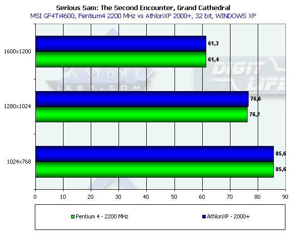 Интересно отметить, что скорость на Pentium4 2200 MHz и AthlonXP 2000+ оказалась поразительно одинаковой.