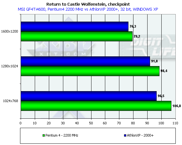 Как мы видим, движок от Quake3 (хоть и переделанный) традиционно "благоволит" архитектуре Pentium4. Как сказал один из постоянных обитателей форума iXBT Данил Гридасов AKA Degustator: "Более высокие результаты Pentium4 обусловлены существенно более быстрым трактом процессор-память-AGP, а вот к этому месту Quake3 Engine очень чувствителен."