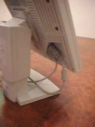 Скажем сразу, что спереди выглядит все это не очень эстетично: провода просто болтаются снизу монитора. Но инженеры компании NEC предусмотрели оригинальную конструкцию для решения этой проблемы: