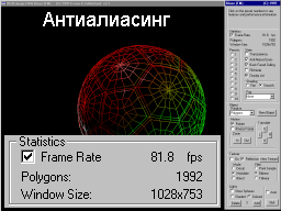 Антиалиасинг — самая запутанная черта современных 3D-ускорителей. В первую очередь потому, что существует много видов антиалиасинга, которые не следует путать друг с другом. Сразу скажу, что в программах моделирования, которые мы использовали, антиалиасинг мы включить не смогли.