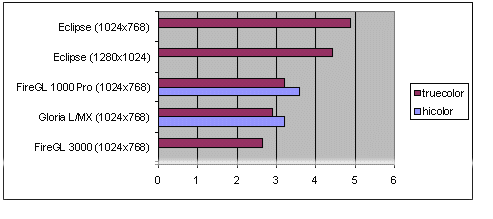Тестировалась плата FireGL 3000 компании Diamond, имеющая 8 MB VRAM и 32 MB EDORAM.
