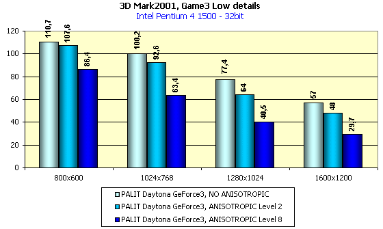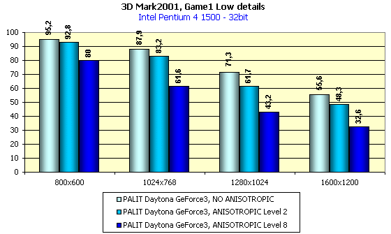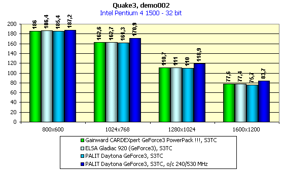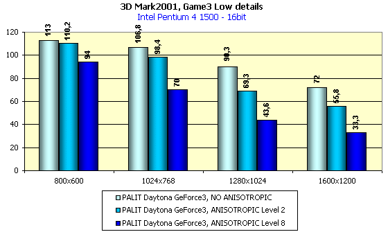 Этот тест демонстрирует то, что Palit Daytona GeForce3 по своей производительности не отличается от остальных видеокарт этого семейства (чего и следовало ожидать).