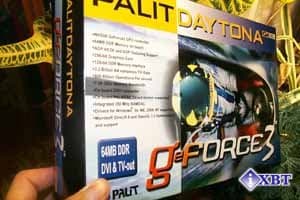 Карта Palit Daytona GeForce3 имеет AGP x2/x4 интерфейс, 64 Мб DDR SDRAM памяти, размещенной в