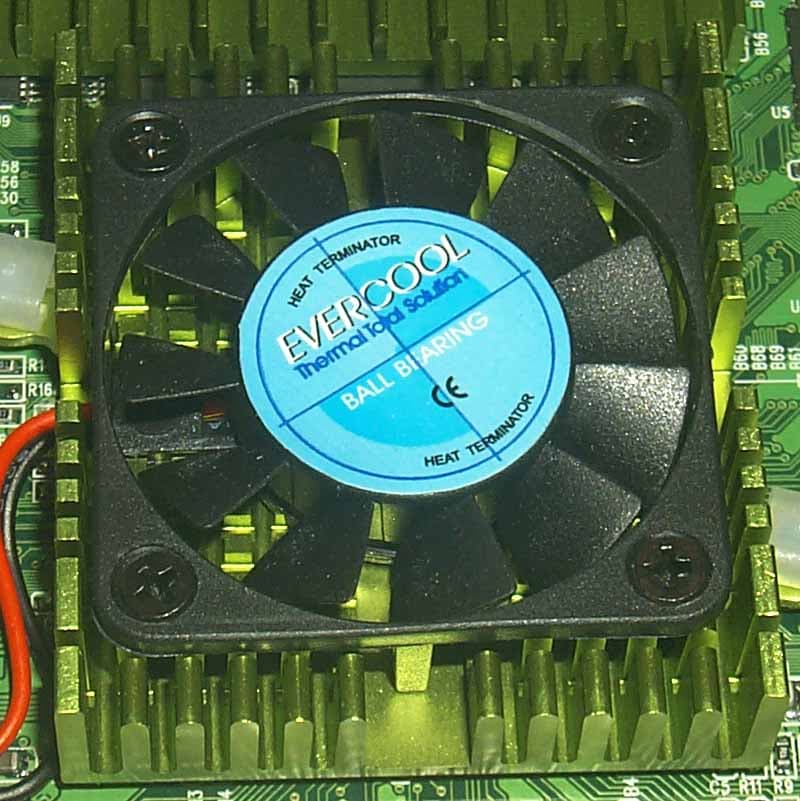 - при разгоне обязательным условием является наличие дополнительного охлаждения, в частности, обдувающего карту (прежде всего ее память) вентилятора (см. снимок выше);