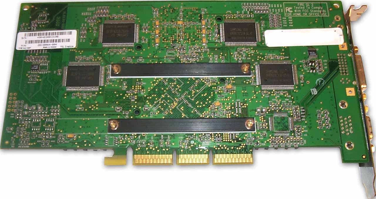 Карта ATI FireGL2 имеет AGP x2/x4 интерфейс, 64 Мб DDR SGRAM памяти, размещенной в 8-ми микросхемах на лицевой и оборотной сторонах PCB.
