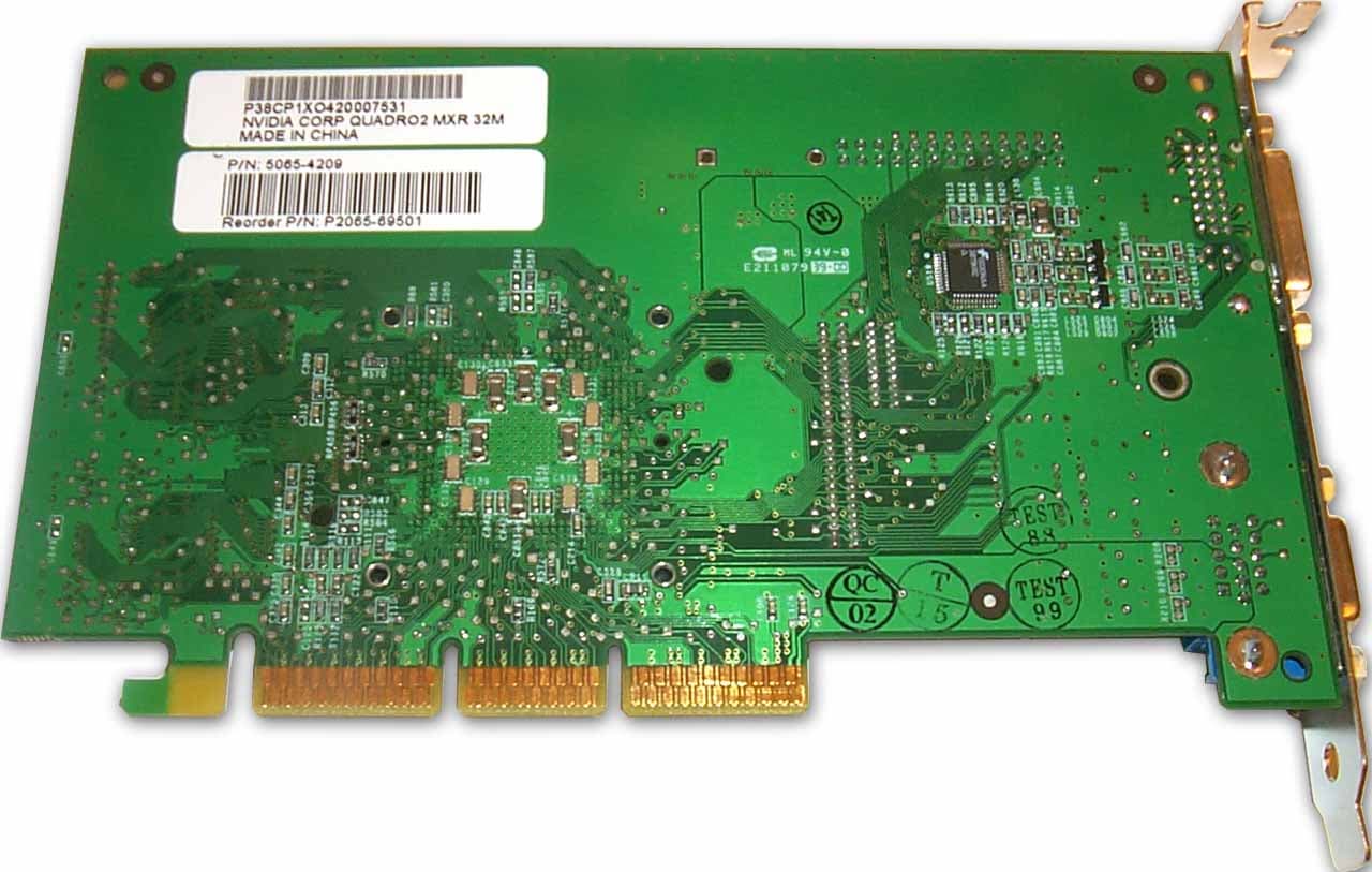 Reference card NVIDIA Quadro2 MXR имеет AGP x2/x4 интерфейс, 32 Мб SDR SDRAM памяти, размещенной в 4-х микросхемах на лицевой стороне PCB.
