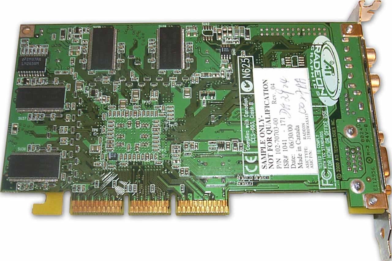 ATI RADEON 64MB DDR VIVO на базе ATI RADEON Graphics имеет AGP x2/x4 интерфейс, 64 Мб DDR SDRAM памяти, размещенной в 8-ми микросхемах на лицевой и оборотной сторонах PCB.