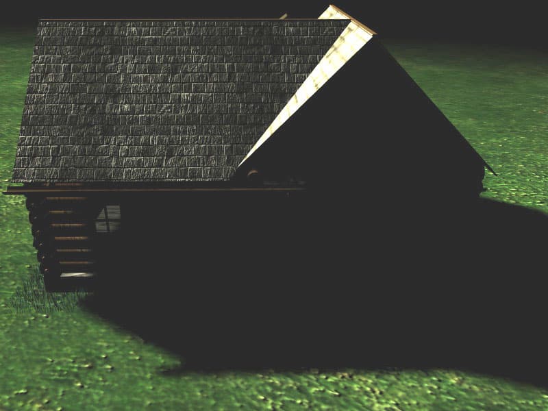 - Сцена 5 полностью аналогична предыдущей, только источники света там используются другого типа-Spot. Этот тип освещения является более сложным для расчетов. Отрендеренный скриншот сцены: