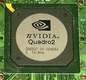 Reference card NVIDIA Quadro2 Pro имеет AGP x2/x4 интерфейс, 64 Мб DDR SDRAM памяти, размещенной в 8-ми микросхемах на лицевой стороне PCB.