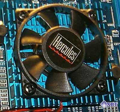 На этой частоте память и функционирует. Дизайн платы отличен от аналогов тем, что Hercules устанавливает на все микросхемы памяти радиаторы, причем это можно увидеть на всех видеокартах последних выпусков. Безусловно, одни из самых быстрых модулей памяти при работе выделяют довольно много тепла, однако опыт работы с аналогами, у которых нет радиаторов на микросхемах памяти, говорит о том, что DDR-память с временем выборки 5 ns прекрасно работает и без радиаторов. Более того, возможность разгона с 200 до 240 МГц при наличии обдувающего карту вентилятора говорит сама за себя.