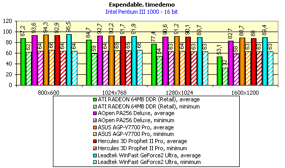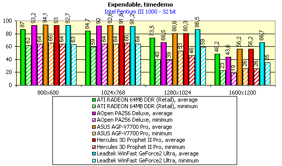 - Rage Expendable (timedemo) — игровой тест, демонстрирующий работу платы в Direct3D в режиме мультитекстурирования.