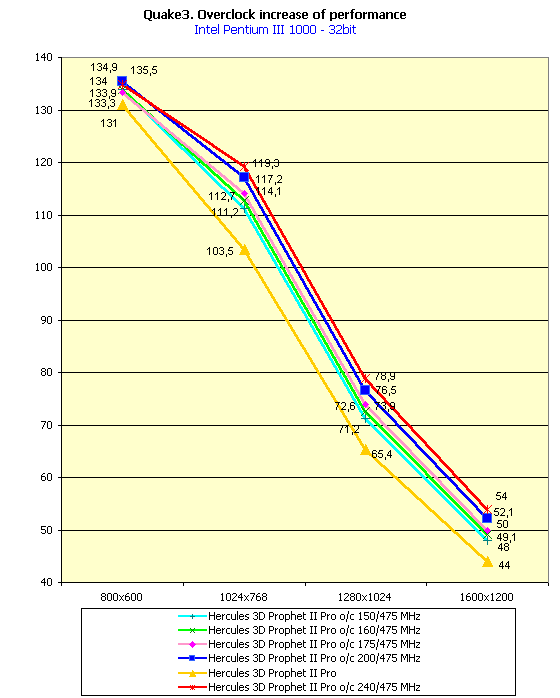 Подведем итоги анализа производительности рассмотренной платы Hercules 3D Prophet II Pro: