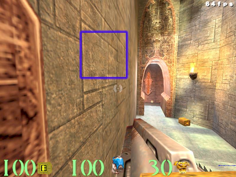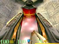 Как мы можем видеть, при низкой детализации налицо размытие изображения, потеря четкости контуров узоров, а также упрощение окружающей обстановки (например, видно, что цилиндрическая ниша за телепортом стала многоугольной). Однако, заметим, что реальная играбельность на существующих драйверах у 3dfx Voodoo3 3000 будет только при низкой детализации.