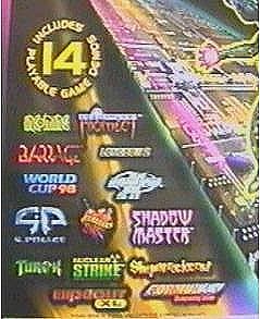 Все они обозначены на коробке (Incoming, Wing Commander Prophecy, Barrage, LongBow 2, World Cup 98, Need For Speed II SE, Gpolice, Forsaken, Shadow Master, Turok, Nuclear Strike, Shipwreckers, Wipeout XL, Formula 1 Championship Edition).