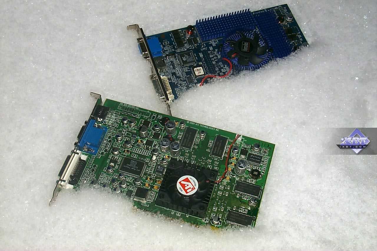 Вот как раз в одно из таких "потеплений" я и провел эксперимент с разгоном двух самых мощных на сегодня 3D-акселераторов, базирующихся на процессорах от разных компаний: ATI и NVIDIA. Хотя, если сказать справедливо, на балконе тогда было вовсе не -4, целых 11 градусов ниже нуля. Надо напомнить, что летом прошлого года при разгоне GeForce3 с помощью морозильной камеры холодильника, температура корпуса системного блока составляла -18 градусов! И все оборудование прекрасно перенесло такой мороз (хотя за HDD я сильно волновался).