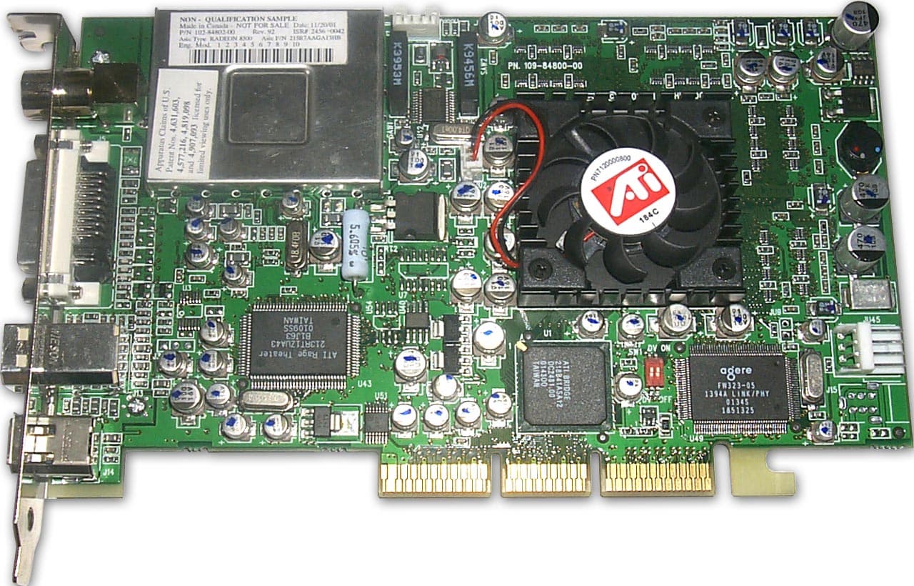 Позднее в переписке с ATI изготовители подтвердили мои предположения о "черном списке". Действительно, практически на всех материнских платах от Intel эта видеокарта со своим экзотическим AGP мостом на чипе ATI BRIDGE 218B41ASA12 вызывала конфликт устройств, что проявлялось в неработоспособности всех устройств в PCI слотах расширения. В качестве решения было предложено отключить на видеокарте контроллер шины IEEE-1394. Отключается чип этого контроллера миниатюрным DIP переключателем на плате. Эта рекомендация помогла, но, соответственно, встроенный в плату DV контроллер стал недоступен. Выбирая их двух зол меньшее, пришлось пожертвовать этим контроллером.