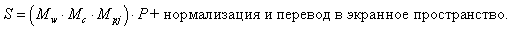 Для наших целей необходимо модифицировать матрицы переходов в пространство камеры, проективное пространство и в экранное пространство.