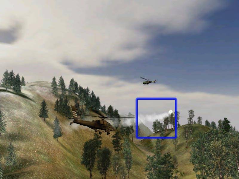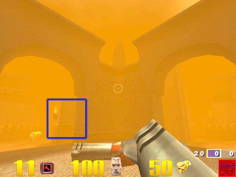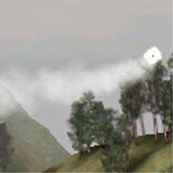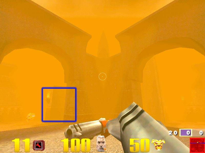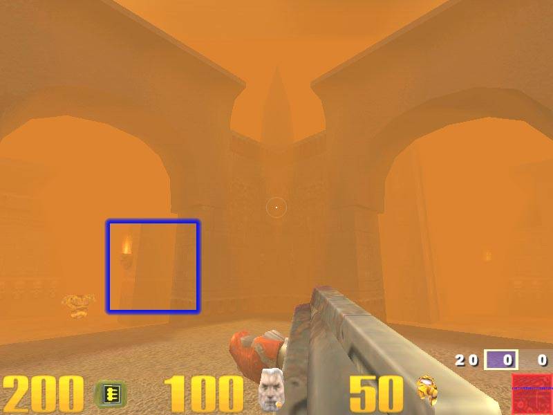 Здесь я выделил туман. Как можно видеть, артефактов, связанных с возможностями видеокарт (Matrox Millennium G400 MAX, Hercules Dynamite TNT2 Ultra, ASUS AGP-V6600 SGRAM, ELSA Erazor X2), нет. Имеющиеся полосы — это такая реализация тумана в игре.