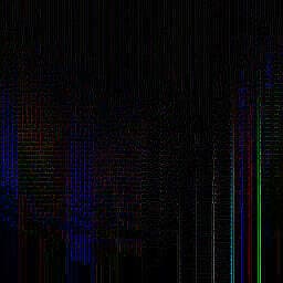 В результате выполнения difference.tga — файл, показывающий различия входных файлов и некоторая информация о том же самом. Нас интересует значение Root Mean Square (RMS), показывающее среднеквадратическую ошибку. Это значение используется как показатель качества сжатия изображений с потерей информации. Чем меньше показатель — тем лучше качество сжатия. Вообще-то, в выходных данных программы много других интересных и полезных цифр: отдельно по цветовым каналам (RGB), различные суммы и т.д., но их слишком много и для нашего рассмотрения достаточно одного RMS.