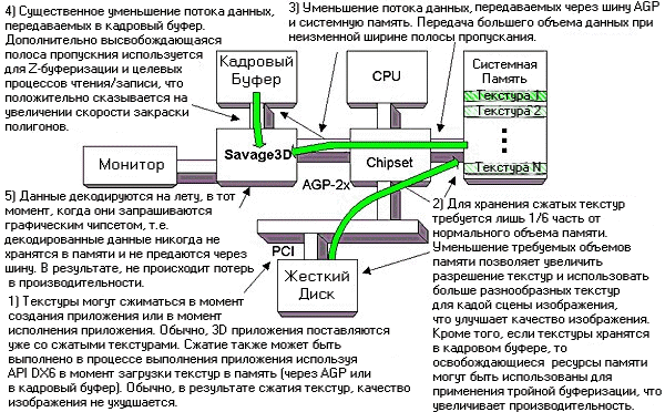 Системная память и пропускная способность AGP являются конечными ресурсами. При применении сжатия текстур графический акселератор может с большей для себя пользой использовать эти ресурсы.