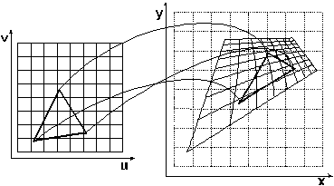 Пространство, в котором хранится текстура (слева), и пространство на экране, в котором располагается наложенная текстура (справа).