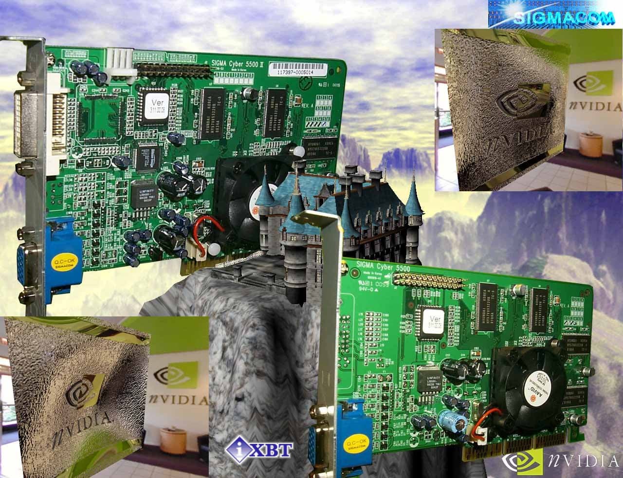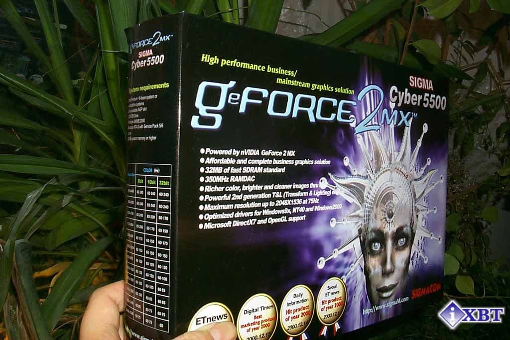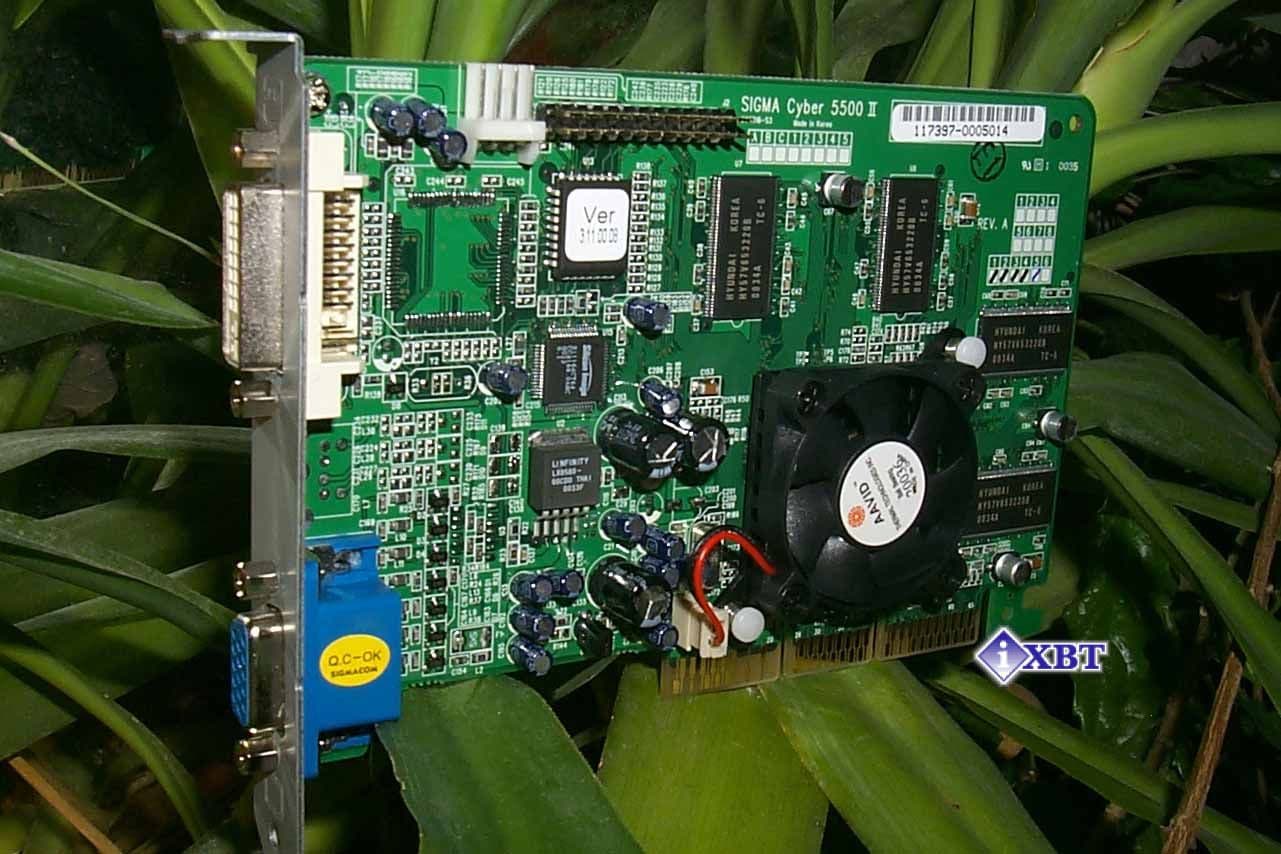 Карты SIGMA Cyber5500 и Cyber5500DVI базируются на NVIDIA GeForce2 MX процессоре, имеют AGP x2/x4 интерфейс, 32 Мб SDR SDRAM памяти, размещенной в 4-х микросхемах на лицевой стороне PCB.