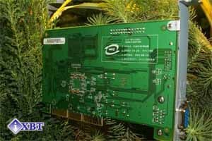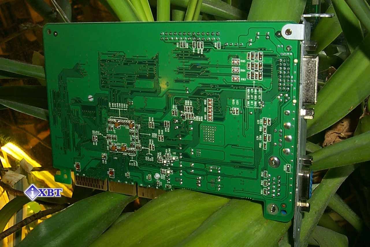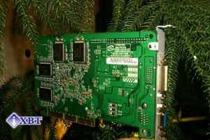 Микросхемы памяти производства Infineon, время выборки 6ns, что соответствует частоте в 166 МГц. На этой частоте память и работает. Подобная память уже стала стандартом для таких карт, мы уже многократно это констатировали. Хотя должен добавить, что разгон у видеокарт на GeForce2 GTS по памяти отнюдь не одинаковый, поэтому не все в данном аспекте зависит от производителя модулей видеопамяти.Дизайн платы, как можно заметить, полностью повторяет эталонный от NVIDIA. Мы можем видеть уже ставший привычным зеленый цвет PCB, а также имеющийся у карты вывод DVI для цифровых мониторов. Интересно заметить закругленные углы у карты, такого еще на моей памяти не было раньше :-).