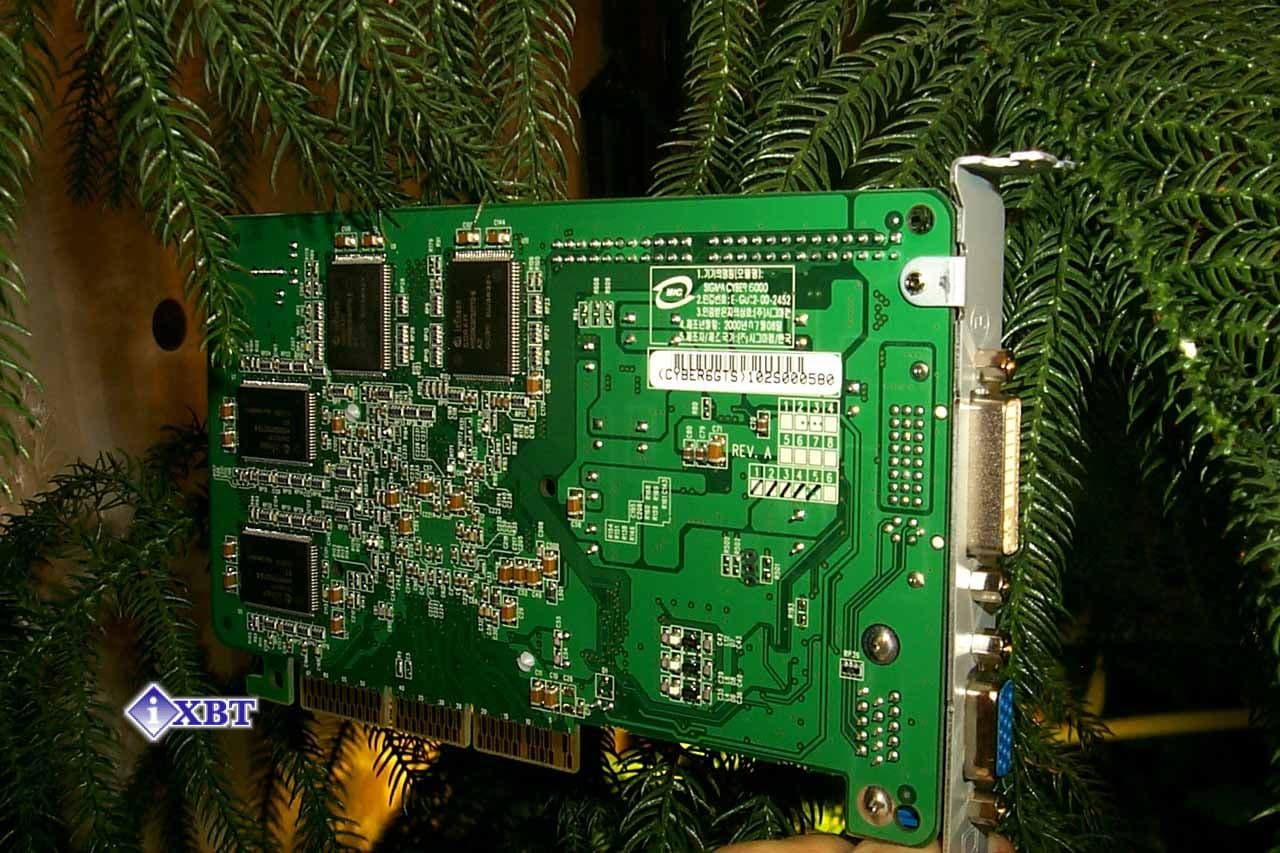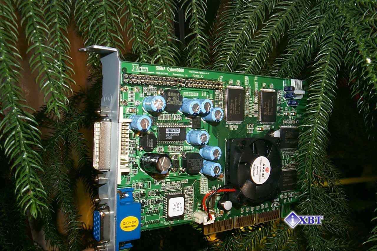 Карта SIGMA Cyber6000 базируется на NVIDIA GeForce2 GTS процессоре, имеет AGP x2/x4 интерфейс, 32 Мб DDR SGRAM памяти, размещенной в 8-ми микросхемах на лицевой и оборотной сторонах PCB.
